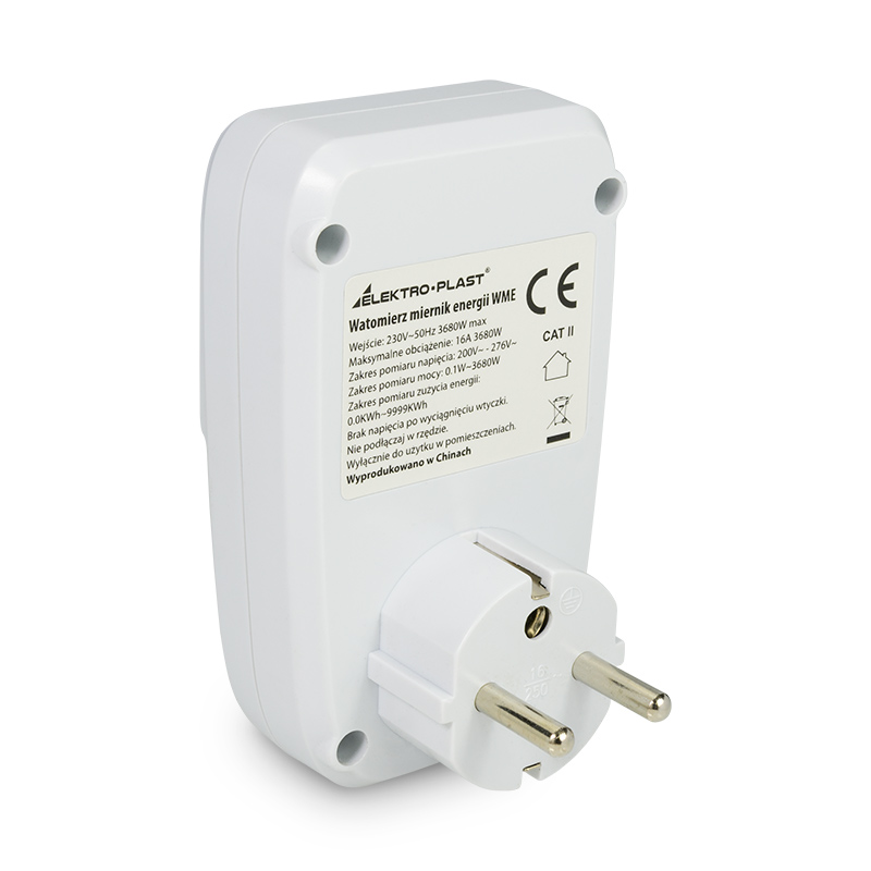 - Watomierz miernik energii WME, 230V~, 16A, 3680W, ekran LCD, koszt w €/KWh
