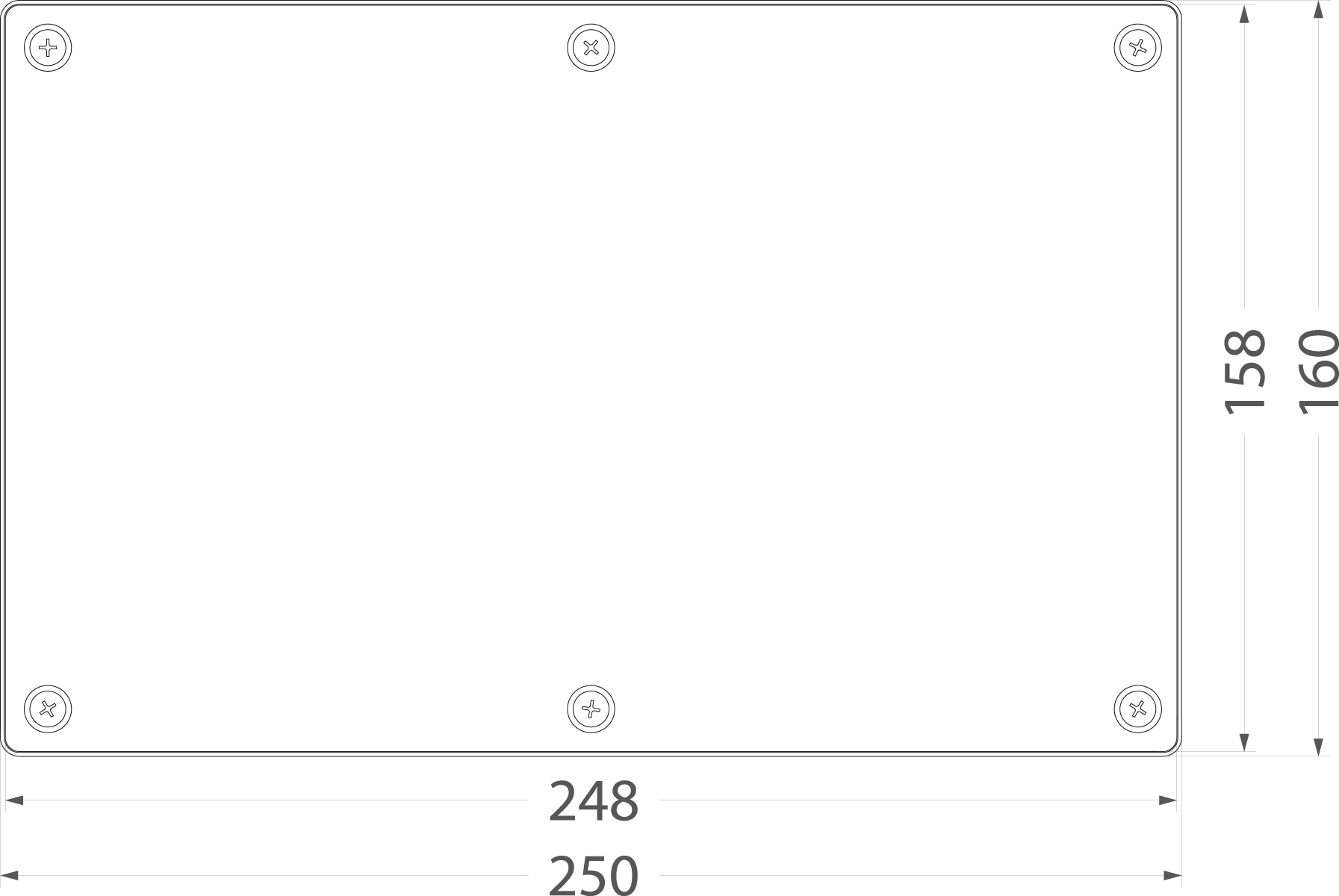 Rysunek Techniczny - Puszka Podtynkowa Elewacyjna Hermetyczna Ppt-EH250 INOX, IK10, IP65, pokrywa ze stali nierdzewnej, 160x250x92