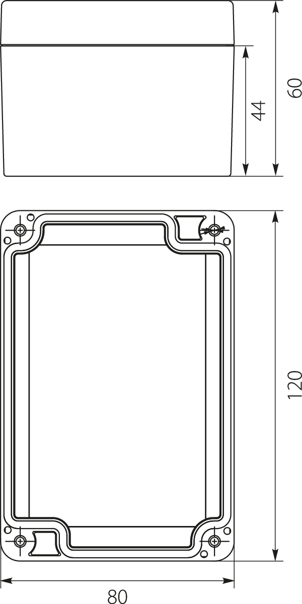 Rysunek Techniczny - Puszka Hermetyczna Przemysłowa STRONG PHP-121 z uszczelką wylewaną, pokrywa na wkręty, szara, IP67