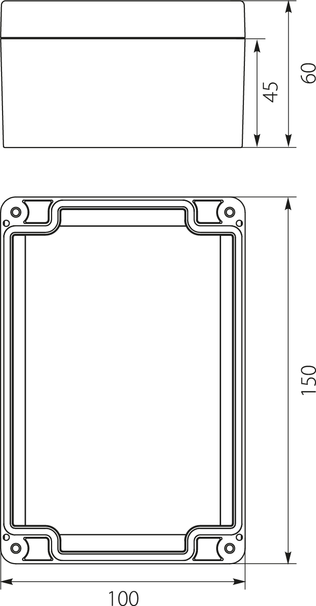 Rysunek Techniczny - Puszka Hermetyczna Przemysłowa STRONG PHP-151 z uszczelką wylewaną, pokrywa na wkręty, szara, IP67