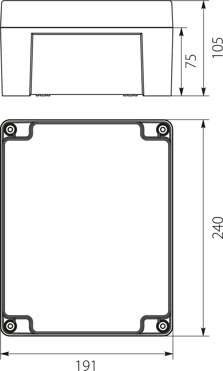 Rysunek Techniczny - Puszka Hermetyczna Przemysłowa STRONG PHP-240 z uszczelką wylewaną, pokrywa na wkręty, szara, IP67