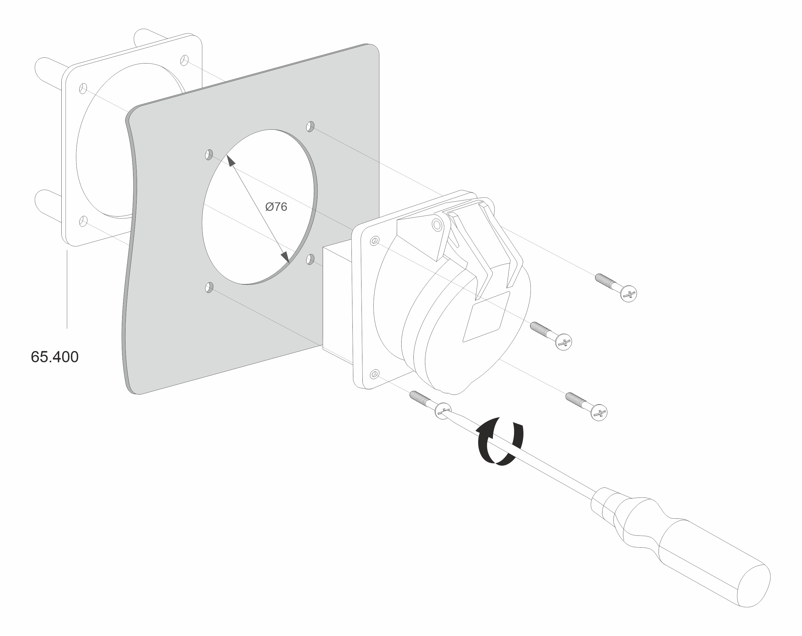 - Wspornik montażowy do gniazd tablicowych 400V, kolor: czarny, 86mm x 86mm