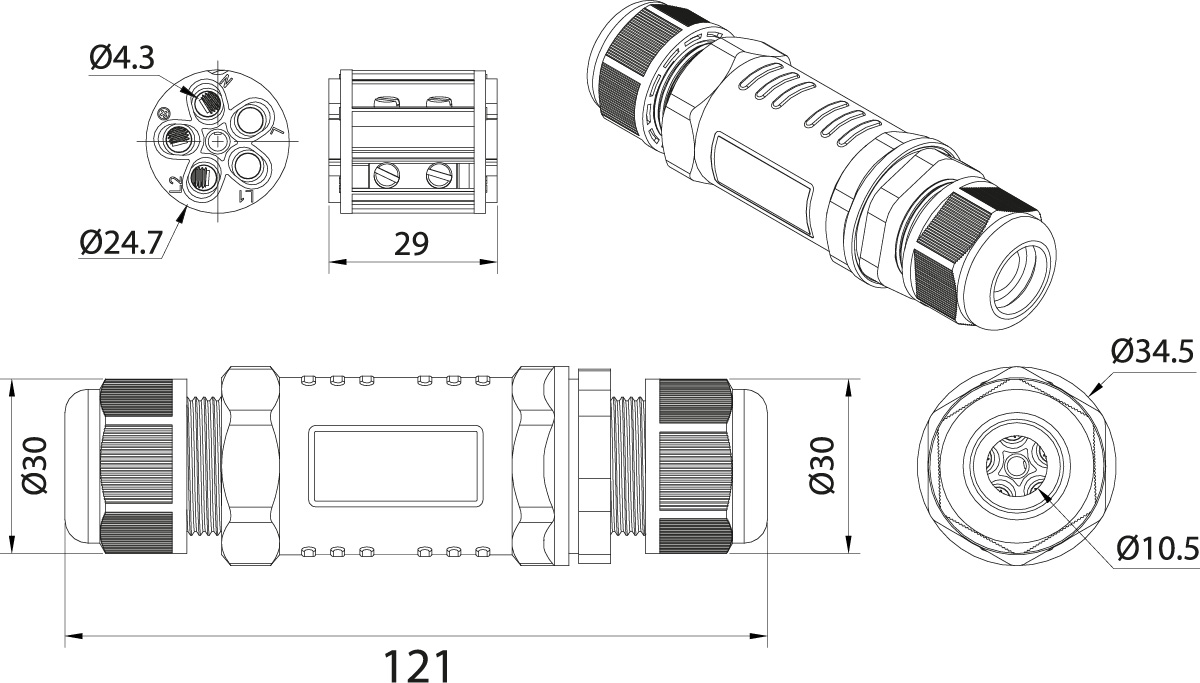- Cable Connector SPN 353, 3P, 3x1.5-4.0, 250V, 16A, IP68