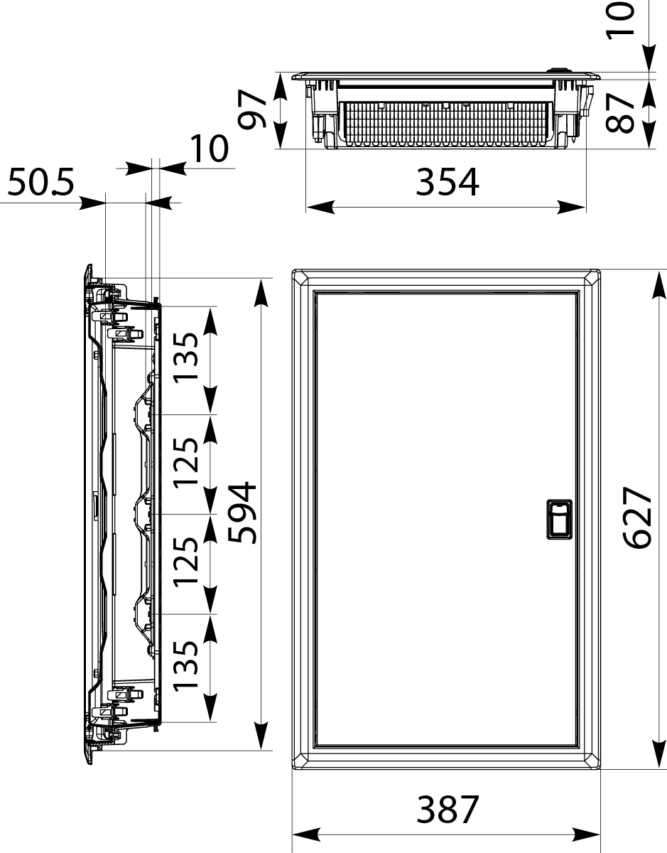 Flush Fit Distribution Board with metal doors RPDM 3x14, N+PE (42), IP40, 1000 VAC, 1500 VDC