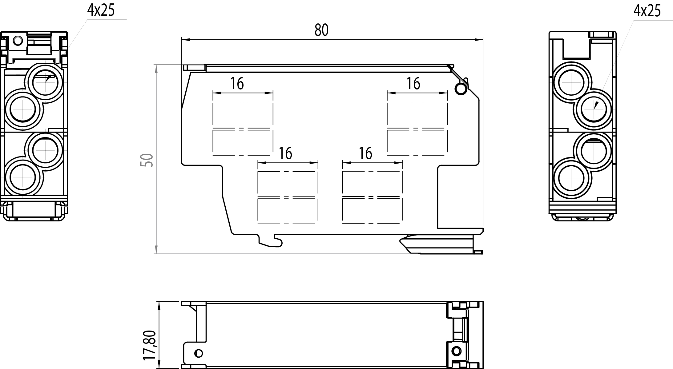 • Distribution block SDB-25/CZE, 100A, 240/415V, 6kV, TH35, 8(4+4), color: red,elektro-plast