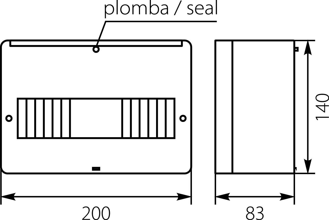Distribution boards are made of high quality plastic. They are applied for indoor use. The distribution boards have a closed box casing with a possibility of sealing. Casing sides have ribs for easier wire or tube insertion. The distribution boards are equipped with description tag labels and N+PE terminal strips. The TH-35/7.5 DIN rail is used as a mounting element in this distribution board. The rail allows to mount miniature circuit breakers (MCBs), residual current devices (RCDs) and other electrical devices. In conformity with current standards and regulations the distribution boards should be placed on slow-burning walls by qualified installers.
