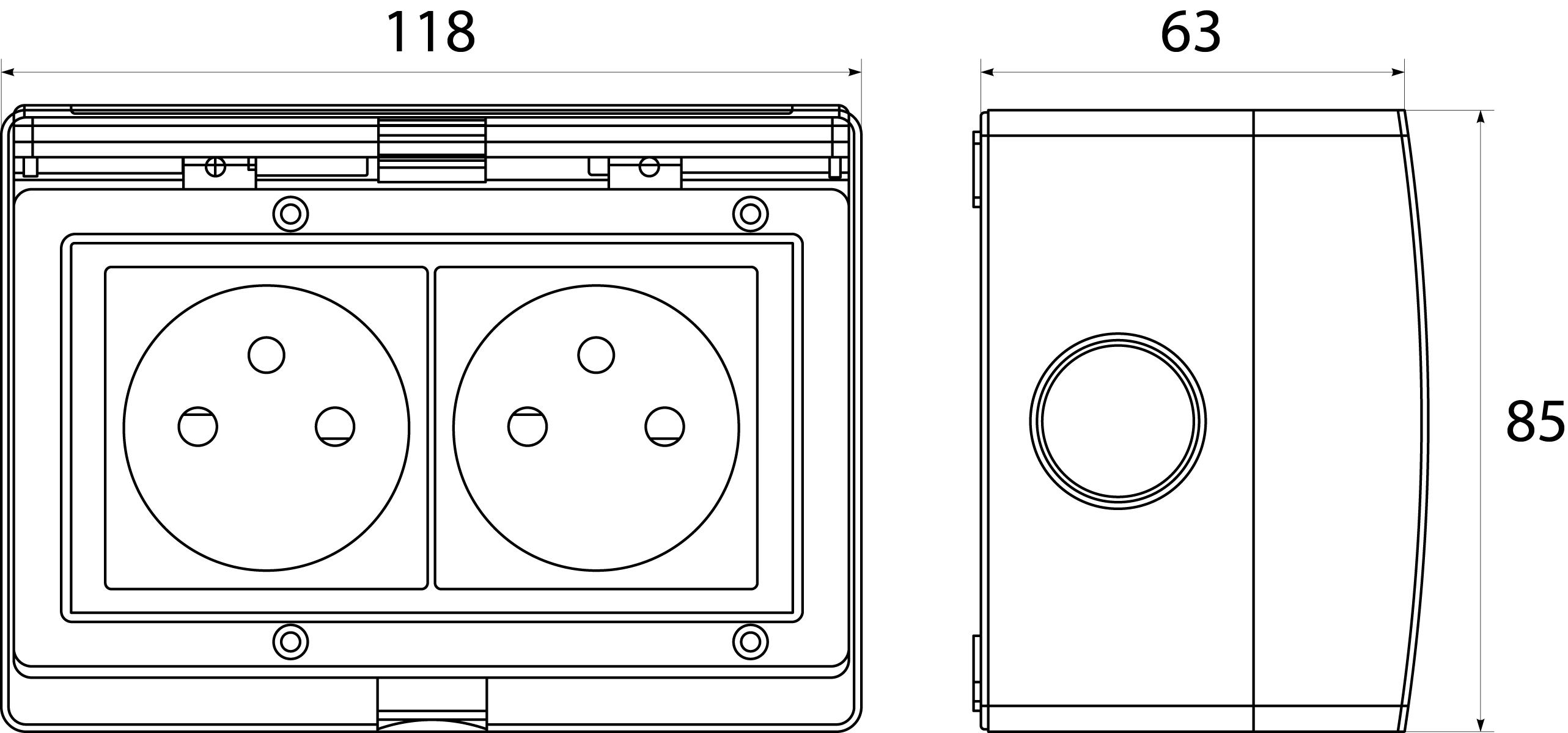 - Double Socket G2N IP55 - AQUA55, 2x2P+Z, 16A, 250V~, color: gray