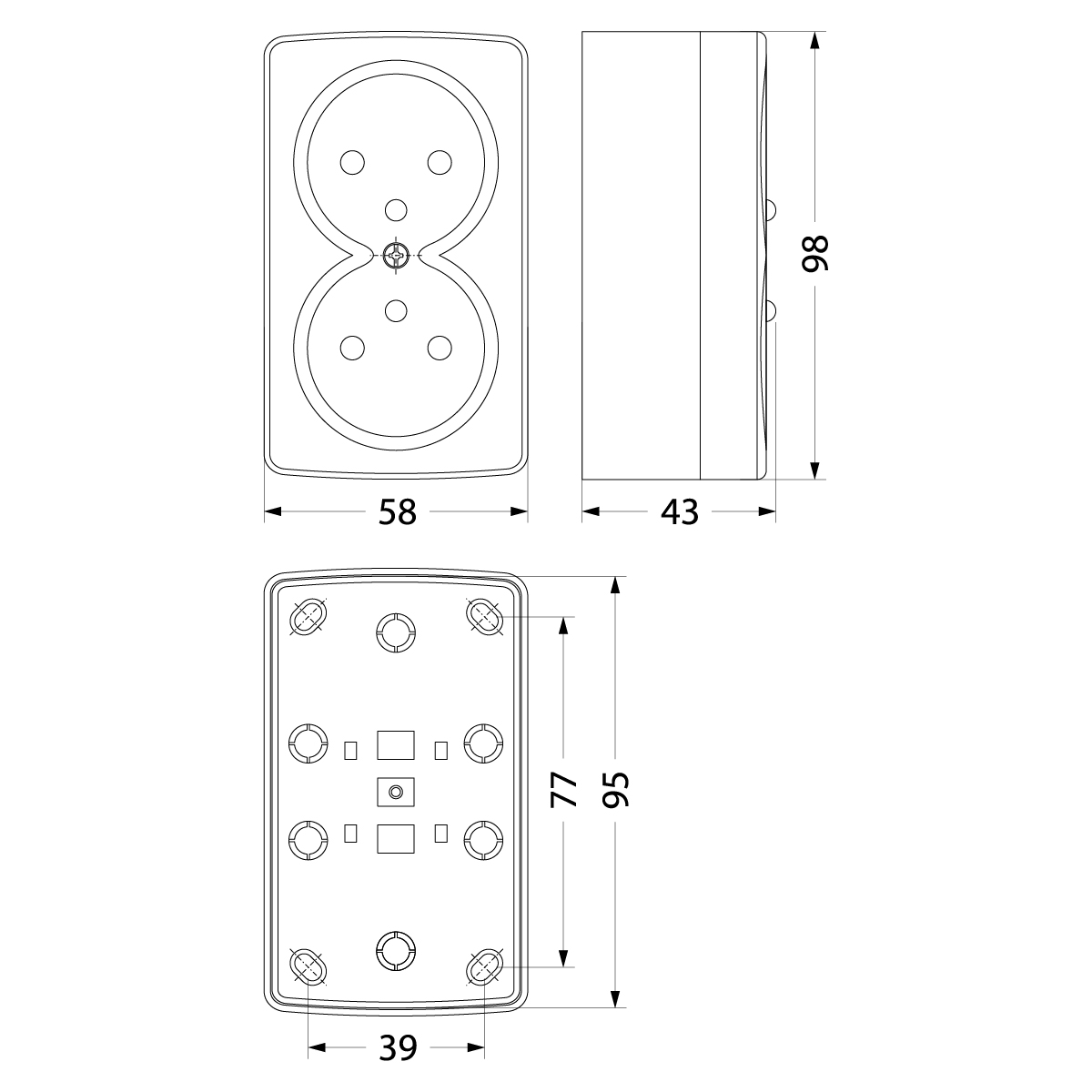 - Double surface mouted socket GNBD250 2x2P+Z, color: white, 250V~, 16A
