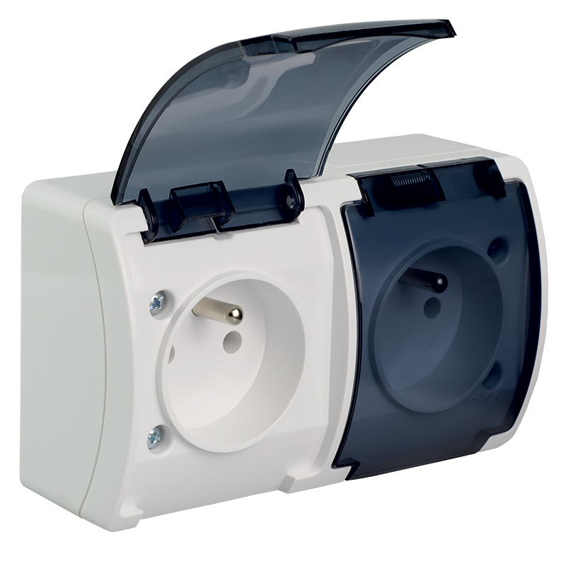 • Double Socket (2x2P+Z) VG-2, with earthing contact, screw type terminals, IP44,elektro-plast