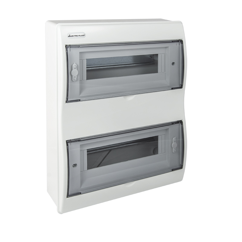The distribution boards are made of high quality plastic. To be applied indoor. The distribution boards have a closed box casing with a possibility of sealing. The sides of the casing have ribs for easier wire or tube insertion. The distribution boards are equipped with description labels and N+PE terminal strips. The TH-35/7.5 DIN rail is used as a mounting element in this distribution board. The rail allows for mounting of miniature circuit breakers (MCBs), residual current devices (RCDs) and other electrical devices. In conformity with current standards and regulations the distribution boards should be placed on slow-burning walls by qualified installers.