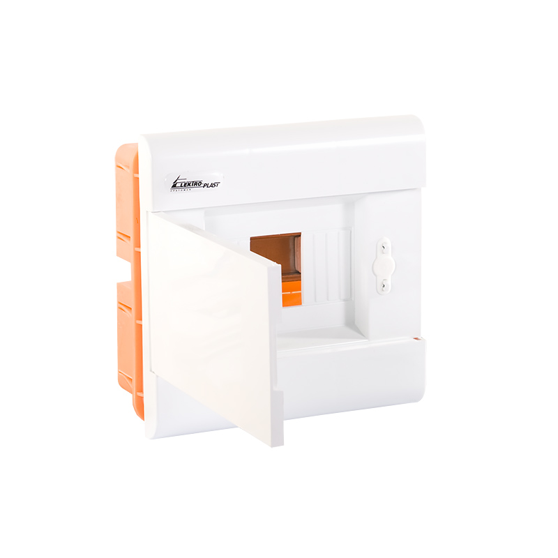 Distribution boards are made of high quality plastic. They are applied for indoor use. Distribution boards have a closed box casing with a possibility of sealing. Casing sides have ribs for easier wire or tube insertion. The distribution boards are equipped with description labels and N+PE terminal strips. The TH-35/7.5 DIN rail is used as a mounting element in this distribution board. The rail allows for mounting of miniature circuit breakers (MCBs), residual current devices (RCDs) and other electrical devices. In conformity with current standards and regulations the distribution boards should be placed on slow-burning walls by qualified installers.