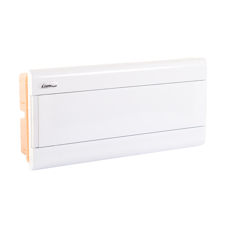 Distribution boards are made of high quality plastic. They are applied for indoor use. Distribution boards have a closed box casing with a possibility of sealing. Casing sides have ribs for easier wire or tube insertion. The distribution boards are equipped with description labels and N+PE terminal strips. The TH-35/7.5 DIN rail is used as a mounting element in this distribution board. The rail allows for mounting of miniature circuit breakers (MCBs), residual current devices (RCDs) and other electrical devices. In conformity with current standards and regulations the distribution boards should be placed on slow-burning walls by qualified installers.