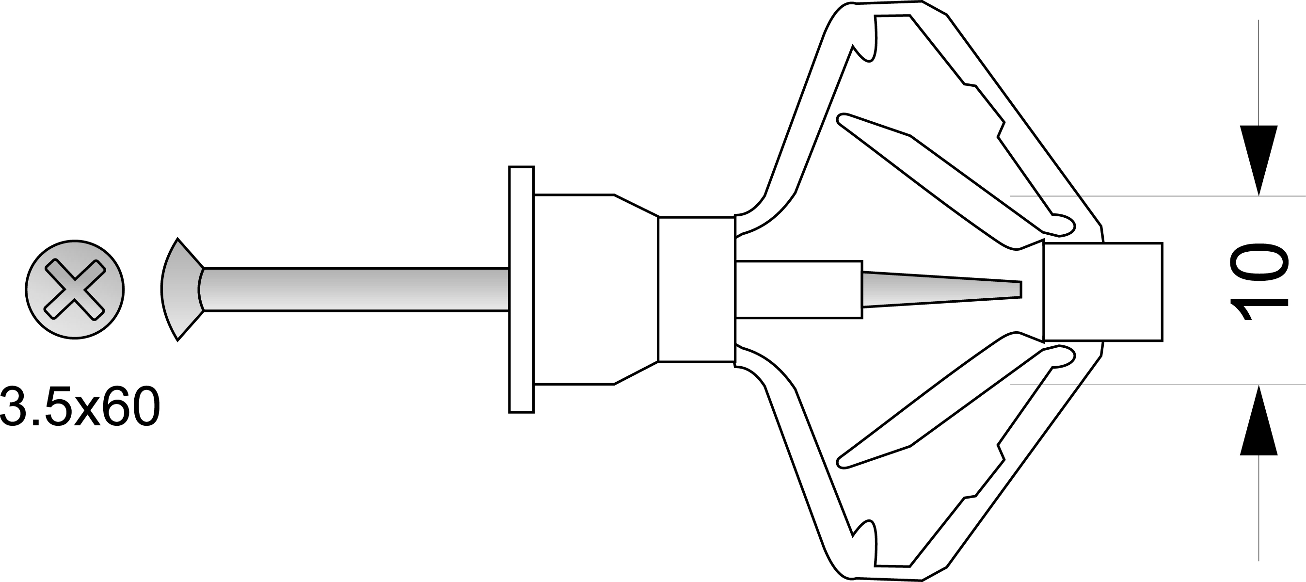 Standard wall anchors designed to be used in solid construction materials. Available with cone head screws or hex head screws.