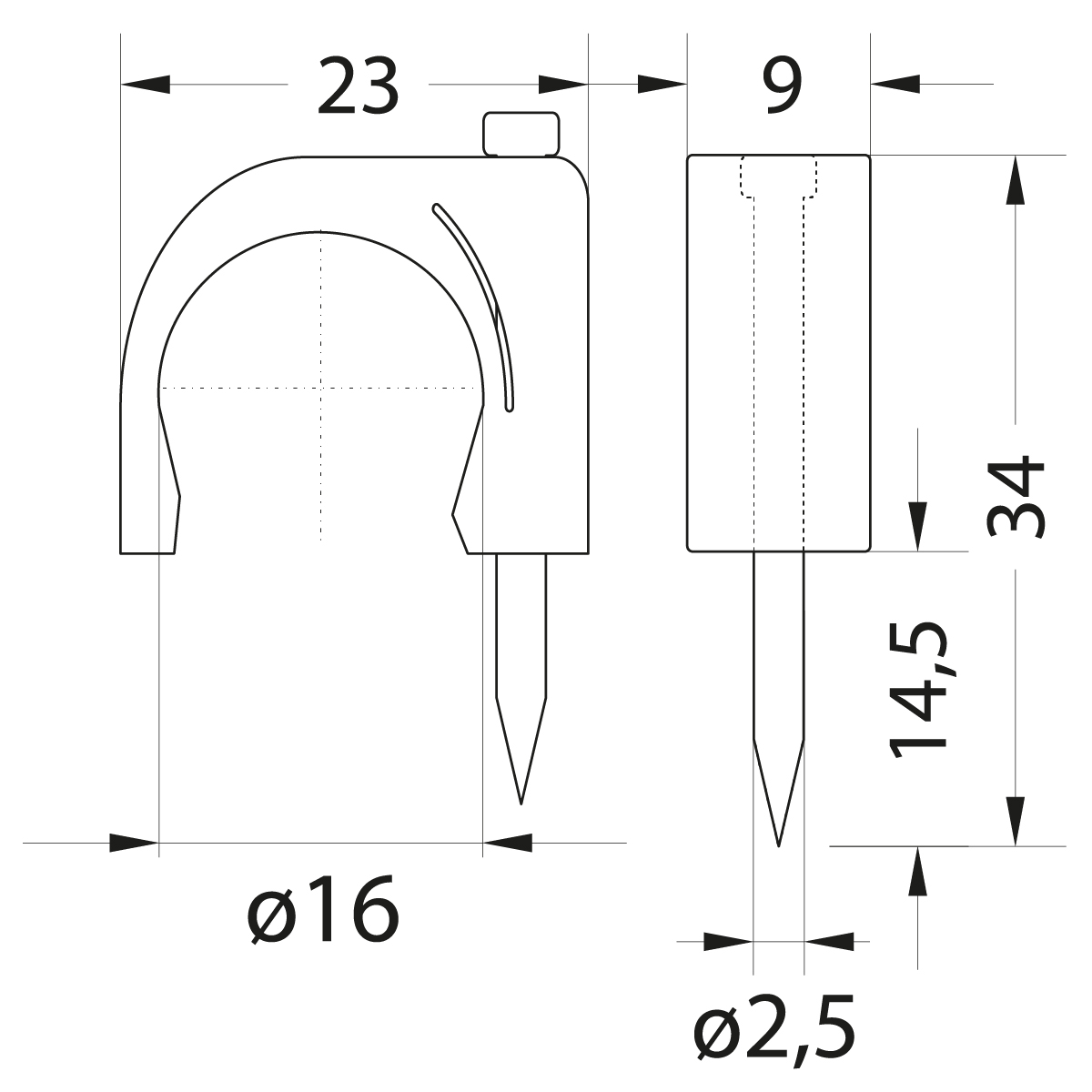 - Cable Clip with nail - FLOP-16, rounded cable ⌀16mm, white, nail: 2.5x34mm