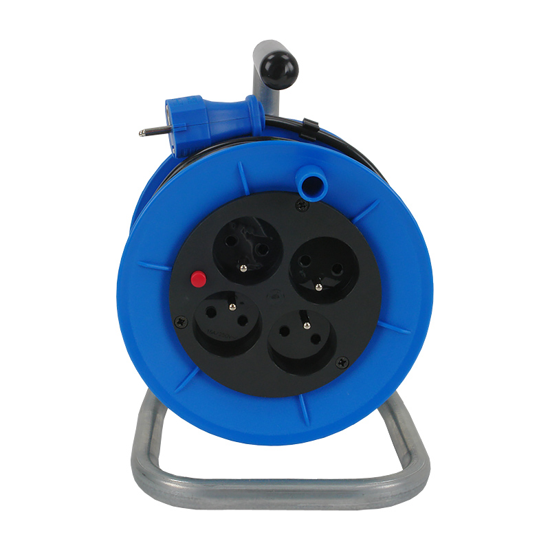 Extension cable reel - a cable reel equipped with an electric wire of different lengths, from 15 to 50 meters, depending on the size and type of a reel. It has four 1-phase 230V sockets with a thermal overload relay. The extension cable reel is also available in the BIS version. It has an additional reel used to roll several meters of wire. It is particularly used as an extender for lawn mowers.