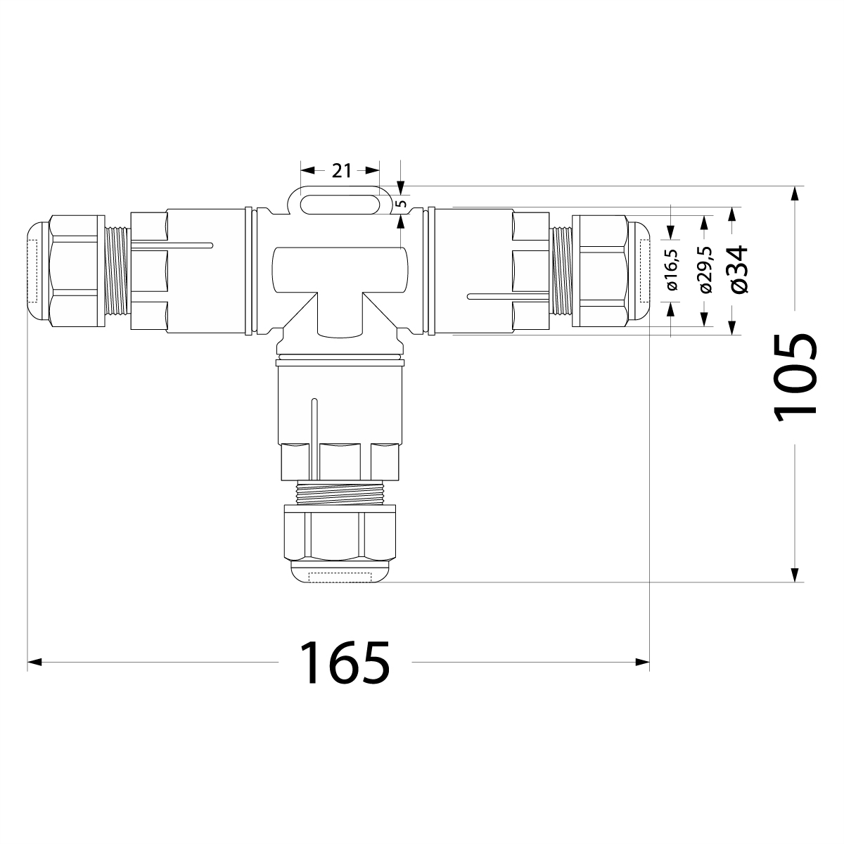 - Cable Connector Tee SZPN 295X-3T, 5x1.5, 250V, 16A, IP68