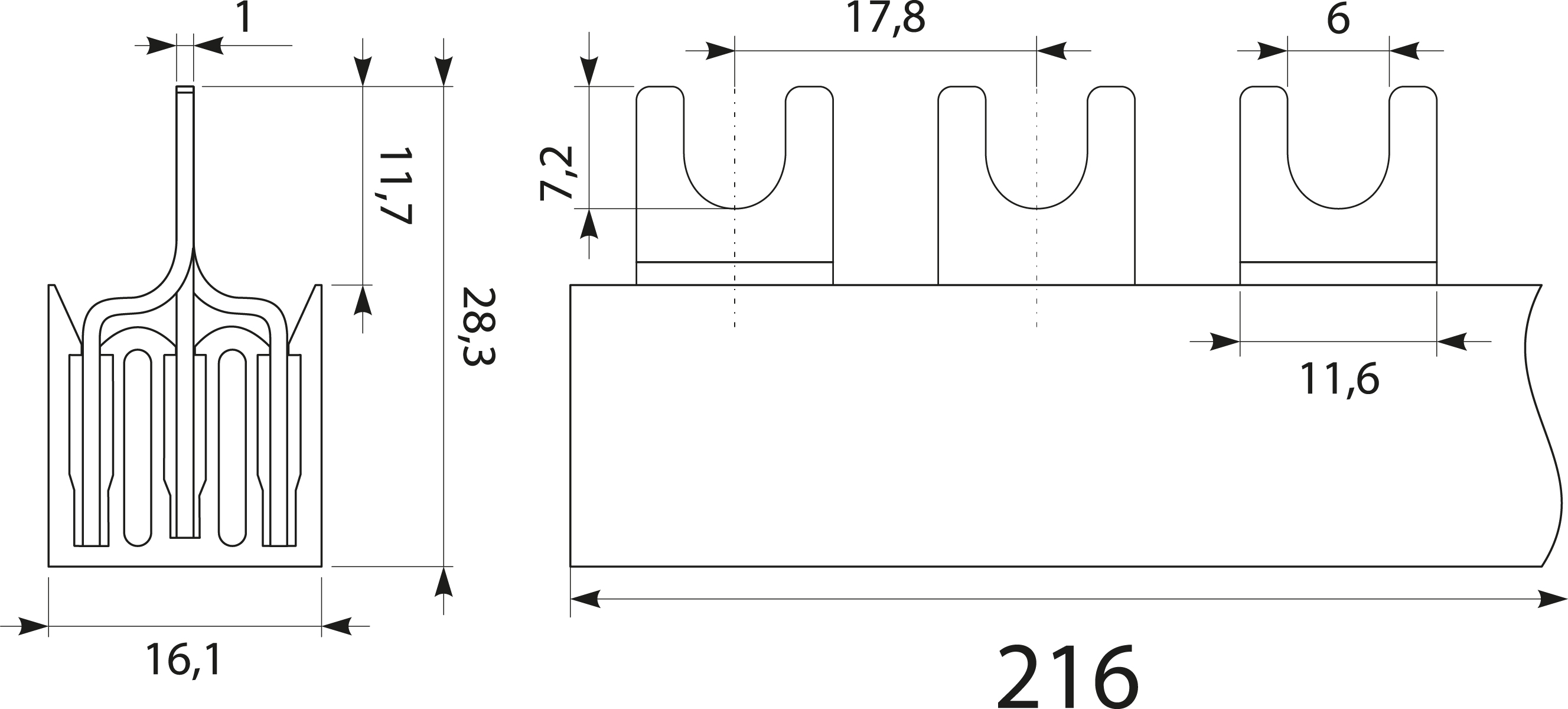Easy to mount, copper insulated busbars used to connect switches and ”S” type electrical devices.