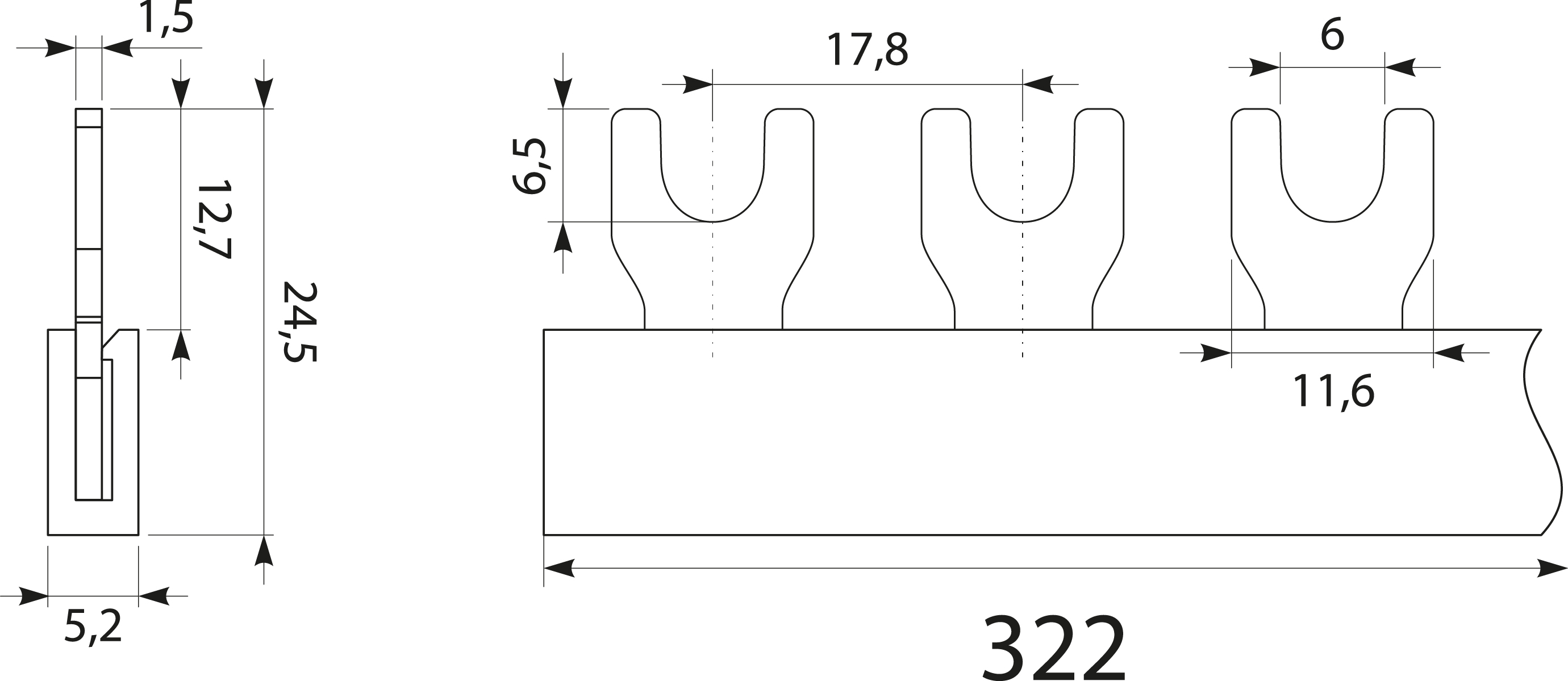 Easy to mount, copper insulated busbars used to connect switches and ”S” type electrical devices.