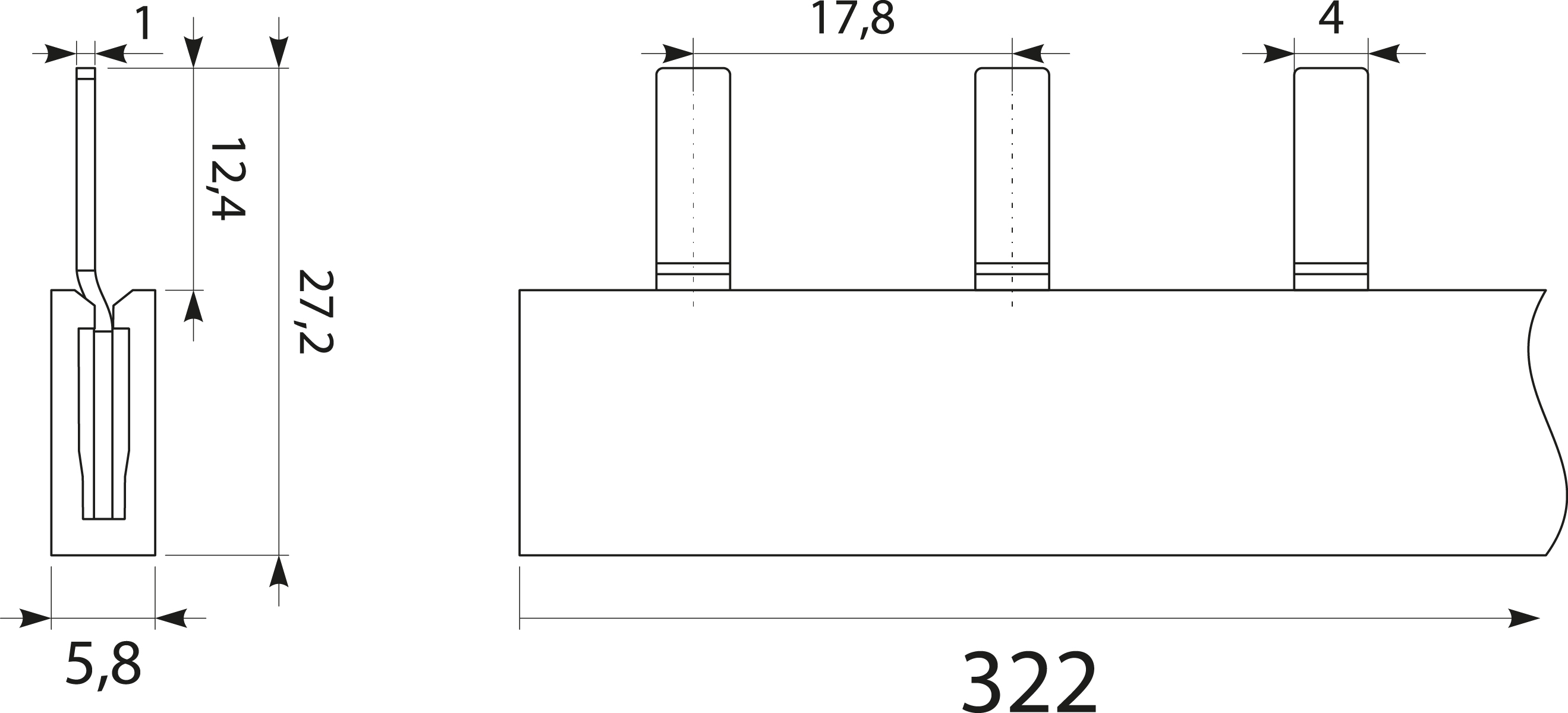 - Szyna prądowa S18 1F-10SZ, typ-PIN, 63A